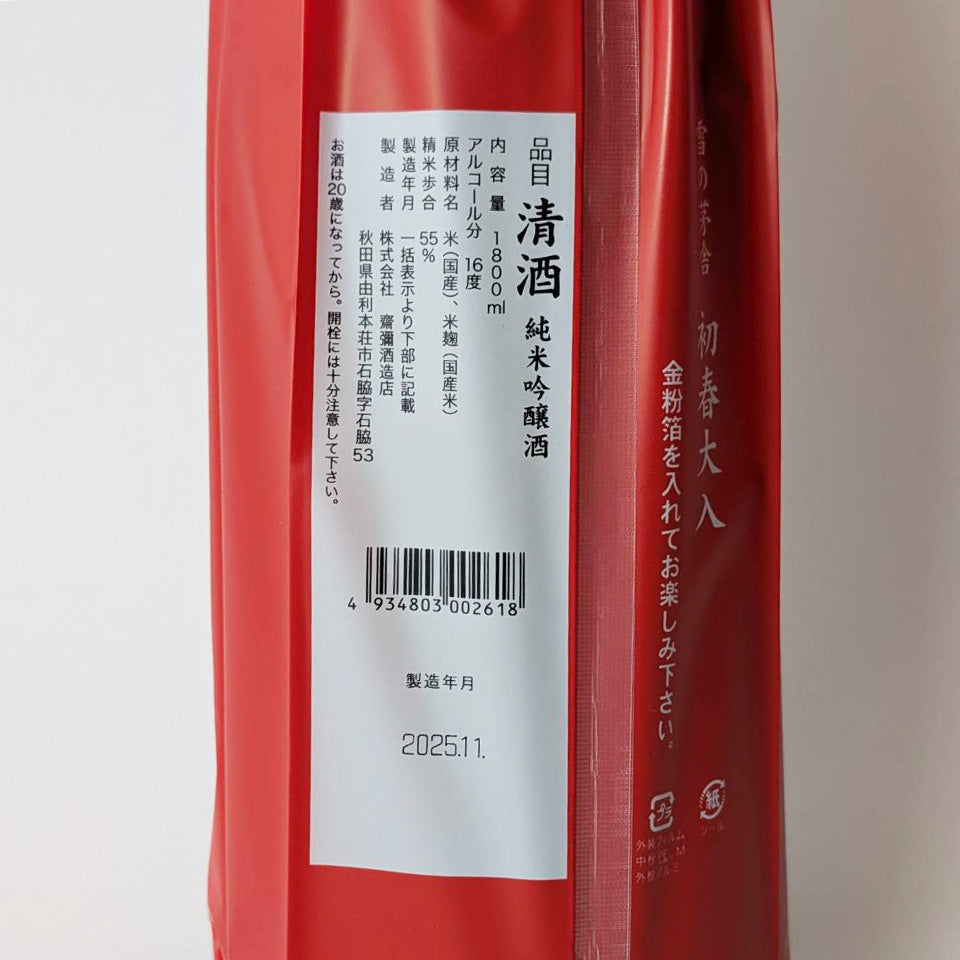 雪の茅舎(ゆきのぼうしゃ)純米吟醸 初春大入 干支絵馬・純金箔付 2026