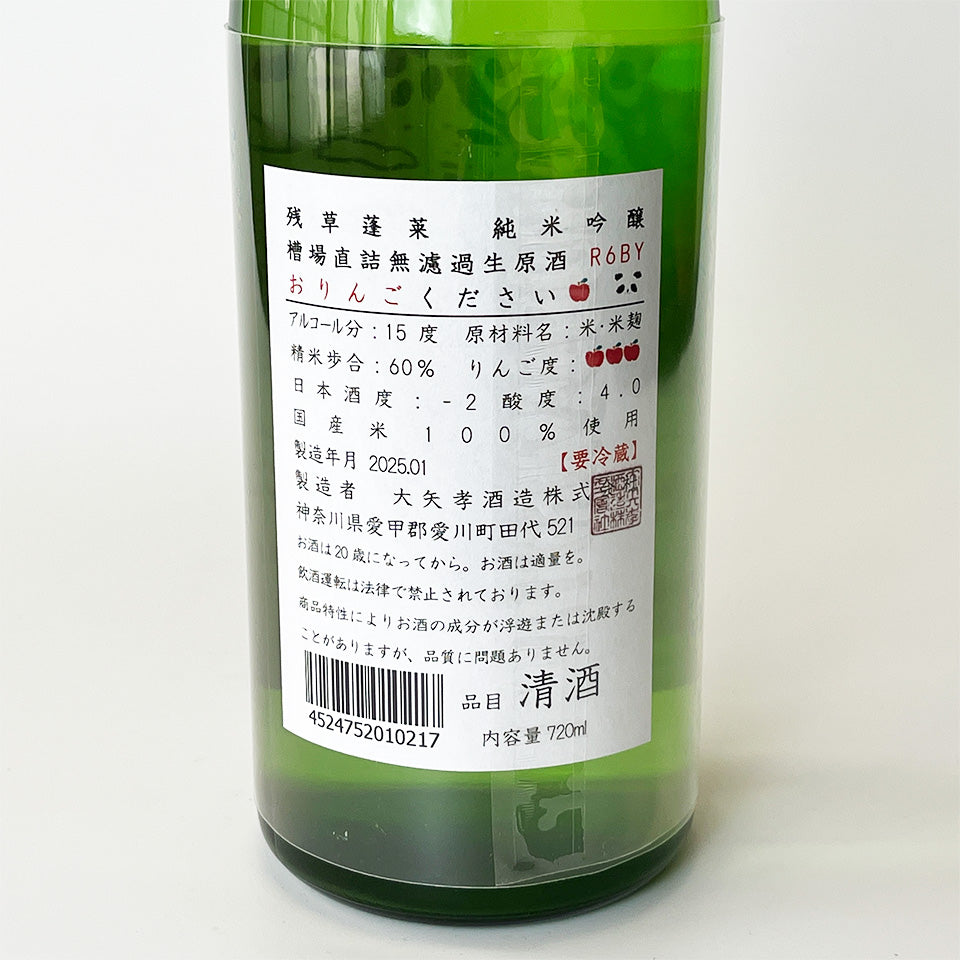 残草蓬莱(ざるそうほうらい) 純米吟醸 槽場直詰 無濾過生原酒 おりんごください (令和6醸造年度)