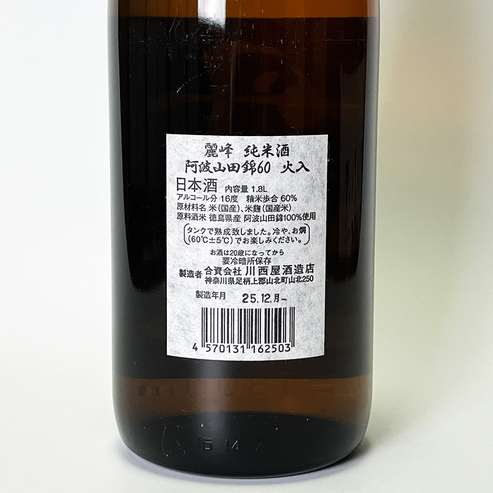 丹澤山(たんざわさん)麗峰 純米 阿波山田錦 60 火入れ